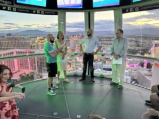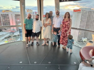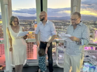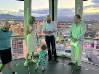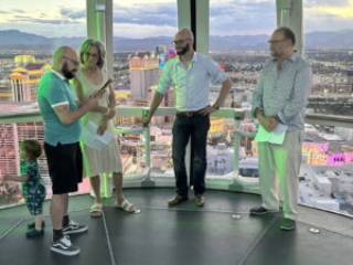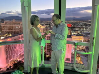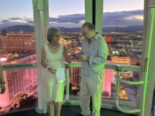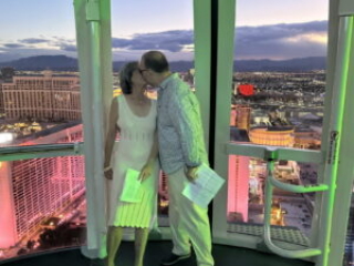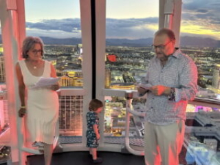 Barry and Dee get Married. Again. 2023 style. By nowellJune 20, 2023June 20, 2023Uncategorized 50 years goes buy in a blink of an eye at least that’s what I’m told. What do you do? Well, you do it again. Here’s proof: The scene. The High Roller Ferris Wheel.Pre-ceremony hijinks with the kids.It takes a village to control two year old twins.The Whole Nine Yards. One kid faces front.The other kid faces front.Kyle delivers his Parent Soliloquy. (Wait for it...)Kyle delivers his Parent Solioquy to an appreciative mother.Alex delivers his Parent Solioquy under the watchful gaze of a kid.Mom tells dad why she started and stayed for 50 years. (Ask about the scarf incident.)Dad tells mom why he started and stayed.When you were in the jewelry business you give rings. again.Ring swap backwards.And the obligatory "You may kiss the bride" scene.Sunset Over Las Vegas.Mr. and Mrs. Little Kid Wranglers
